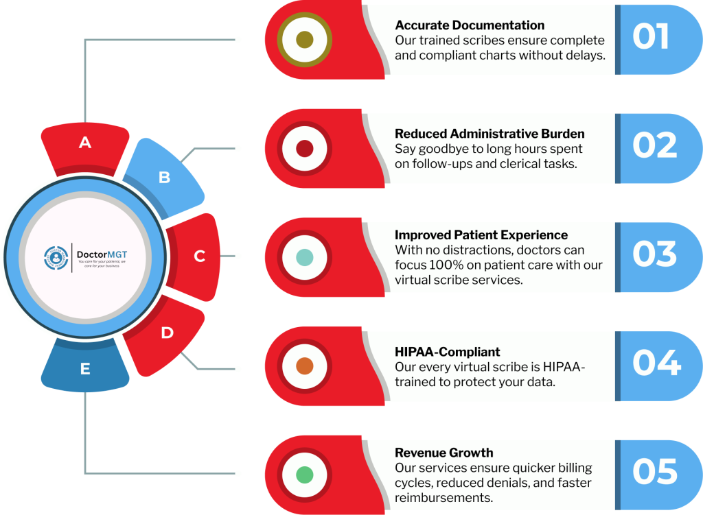 At Doctor MGT, we provide you with the best medical scriber service. As our service is fully compliant with the HIPAA rules, it makes healthcare professionals trust us with the sensitive information and confidentiality. Our virtual scribes for physicians help doctors spend less time on paperwork and more time with their patients.